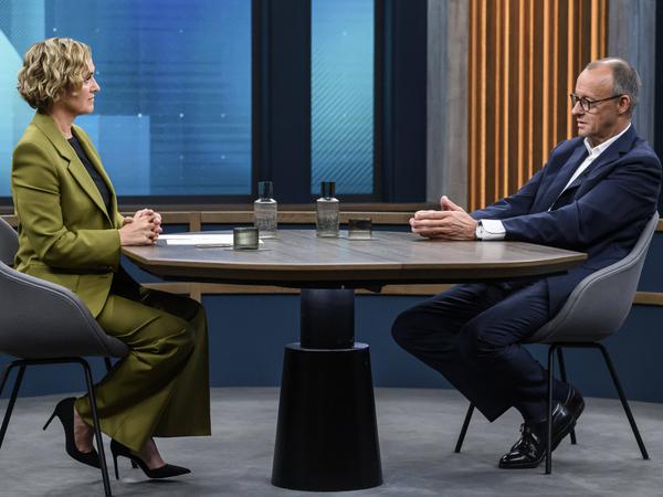 Caren Miosga im Gespräch mit Bundeskanzler Friedrich Merz.