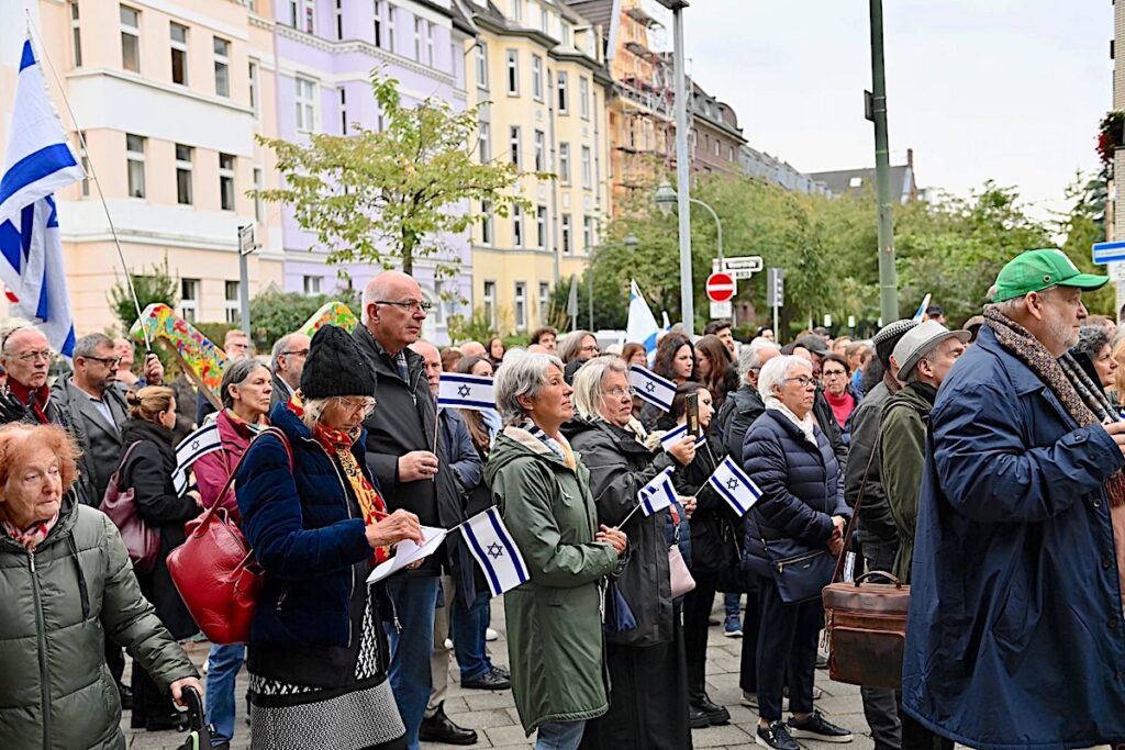 Rund 150 Menschen kamen am Montagabend (6.10.) auf den Vorplatz der Synagoge in Düsseldorf. Sie hatten Kerzen in den Händen, manche trugen Israels Flaggen. Gemeinsam gedachten sie des Hamas-Überfalls auf Israel vor zwei Jahren. Unter ihnen befanden sich sich die stellvertretende Ministerpräsidentin des Landes Nordrhein-Westfalen, Mona Neubaur, und der Antisemitismus-Beauftragte der Stadt Düsseldorf, Wolfgang Rolshoven. Unter den Teilnehmenden war auch der Leiter der Düsseldorfer Mahn- und Gedenkstätte, Bastian Fleermann.