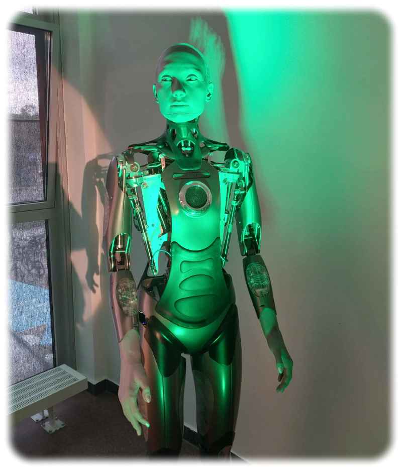 Dieser humanoide Roboter demonstriert einen Forschungsschwerpunkt im Ceti Dresden: Kann eine elaborierte Mimik die Akzeptanz für Roboter im Alltag verbessern – oder erreicht an damit das Gegenteil? Foto: Heiko Weckbrodt