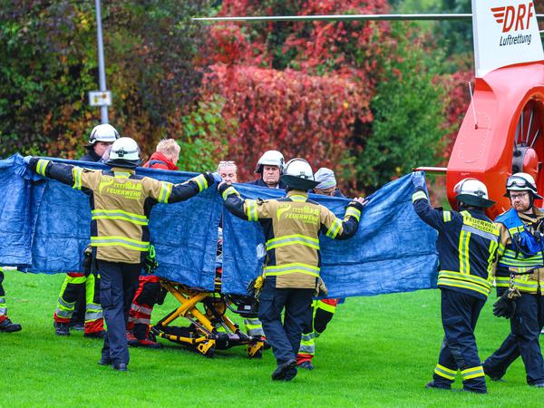 Iris Stalzer wird zu einem Rettungshelikopter gebracht.