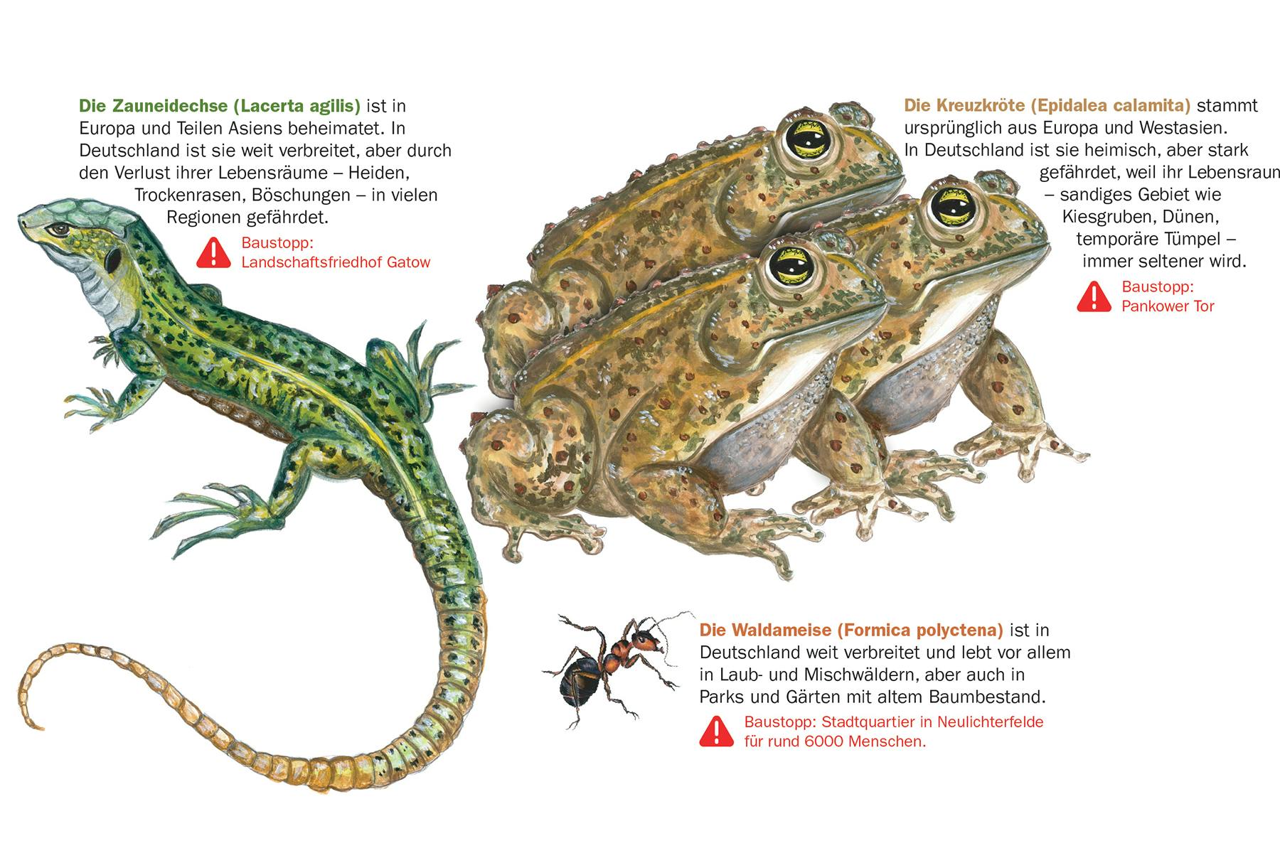 So wird die Kreuzkröte zum Sinnbild einer Stadt, die sich selbst lähmt. Kleine Tiere, große Wirkung: Kreuzkröten in Pankow, Ameisen in Lichterfelde, Eidechsen in Marzahn. Sie kennen keine Baupläne und keine Paragrafen. Sie folgen nur ihrem Instinkt und zwingen eine Millionenstadt zum Stillstand.