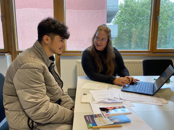 Zuversicht wichtig: Belend Mustafa (19) lässt sich von Isabell Müller zu seiner Bewerbung beraten.