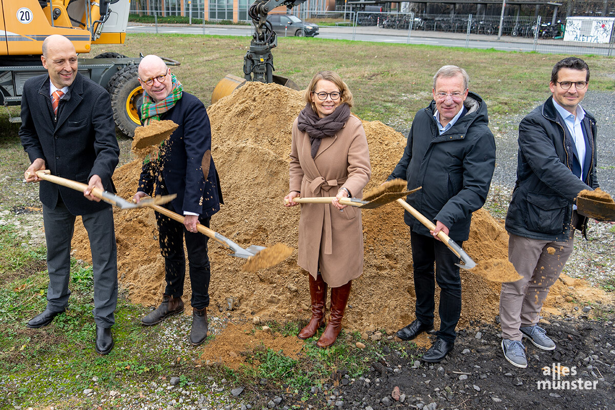 Wie oft Markus Lewe einen Spaten in irgendeinen Sandhaufen gerammt hat, weiß er selber nicht so genau: „Da müssen Sie die Vertreter der Partei ‚Die Partei‘ fragen, die haben einen entsprechenden Kalender entworfen. Ich wollte mal einen Kalender machen, auf dem gezeigt wird, wer hinterher alles an den Büffets hängt. [lacht] Aber: unzählig oft! Also erst mal bei eigenen Projekten, Schulen, Kitas, Schulanbauten, Kitaanbauten, Neubauten. Aber auch bei benachbarten Investitionen wie der Universität, die ja auch in erheblichem Maße Neubauten vornehmen konnte, bei Kliniken, neulich noch bei einer Pflegeschule. Die Anzahl der Spaten, die ich in die Hand genommen habe, zeigt eben auch, dass diese Stadt boomt. Auch wenn da vielleicht der ein oder andere drüber lästern mag: Es ist ja immer auch ein Symbol dafür, dass es schöner ist, einen Spaten in der Hand zu haben, als eine Abrissbirne zu bedienen. Die Dinge, die entstanden sind, sind ja oft Folge eines langen Prozesses, einer langen Entwicklung, vielleicht auch einer langen Sehnsucht – siehe Preußenstadion – und sie signalisieren: Jetzt geht es wirklich los!“