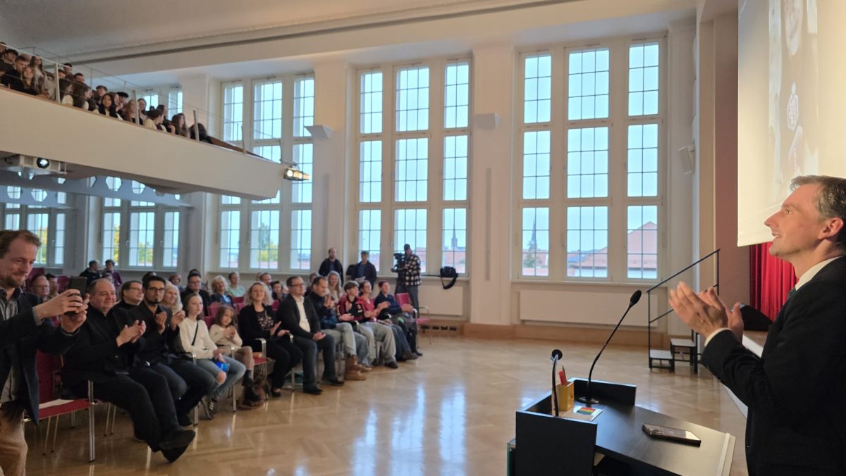 Bildungsminister Jan Riedel gratulierte der Siegerklasse und der gesamten Schule herzlich vor Ort beim gemeinsamen Public Viewing an der Latina:„Ich bin unglaublich stolz auf die Schülerinnen und Schüler der Latina in Halle. Ihr Erfolg zeigt eindrucksvoll, wie Neugier, Teamgeist und Freude am Lernen zu herausragenden Ergebnissen führen können. Dass die Latina diesen Titel nun schon zum zweiten Mal gewonnen hat, ist ein starkes Zeichen für die exzellente Bildungsarbeit, die dort täglich geleistet wird – und ein Vorbild für Schulen in ganz Sachsen-Anhalt.“