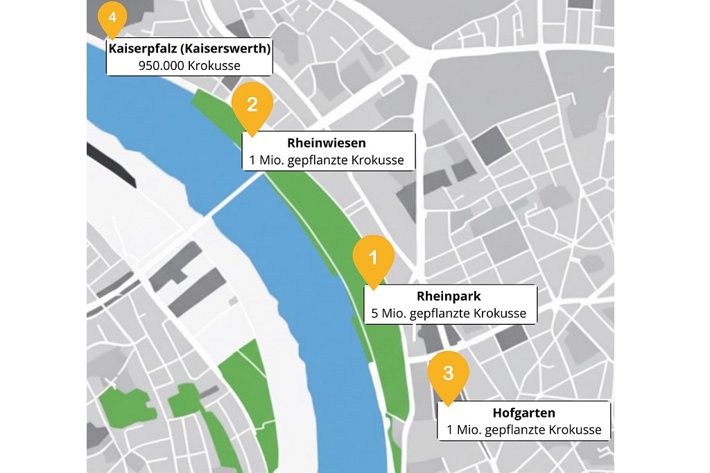 Das “Blaue Band” erstreckt sich über vier Standorte, Grafik: Pro Düsseldorf