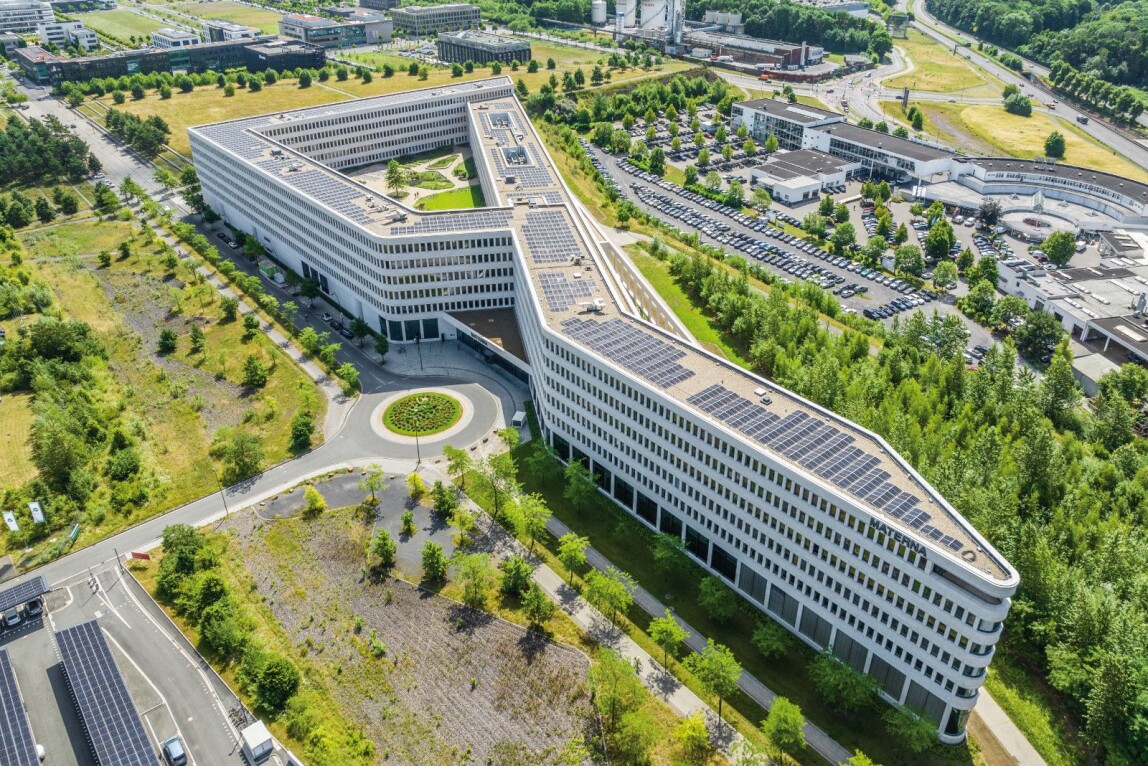 Das Gebäude, entworfen von Gerber Architekten, bietet Platz für rund 1.800 Mitarbeiter und prägt das Phoenix-West-Areal durch seine markante Form. Der Entwurf verbindet Transparenz, Offenheit und flexible Arbeitswelten mit einem hohen Sicherheitsstandard.