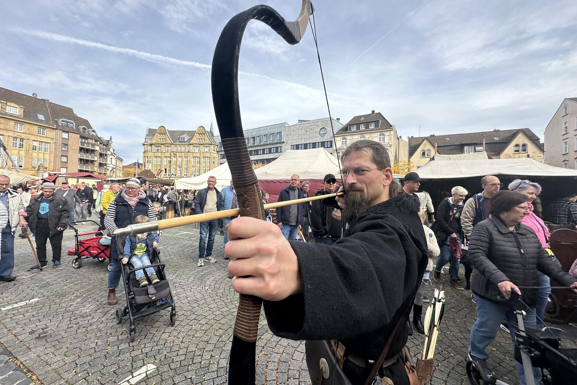 Bogenschießen war 2024 auf dem Marktplatz eine beliebte Attraktion auf dem Mittelaltermarkt.© Jan Keuthen