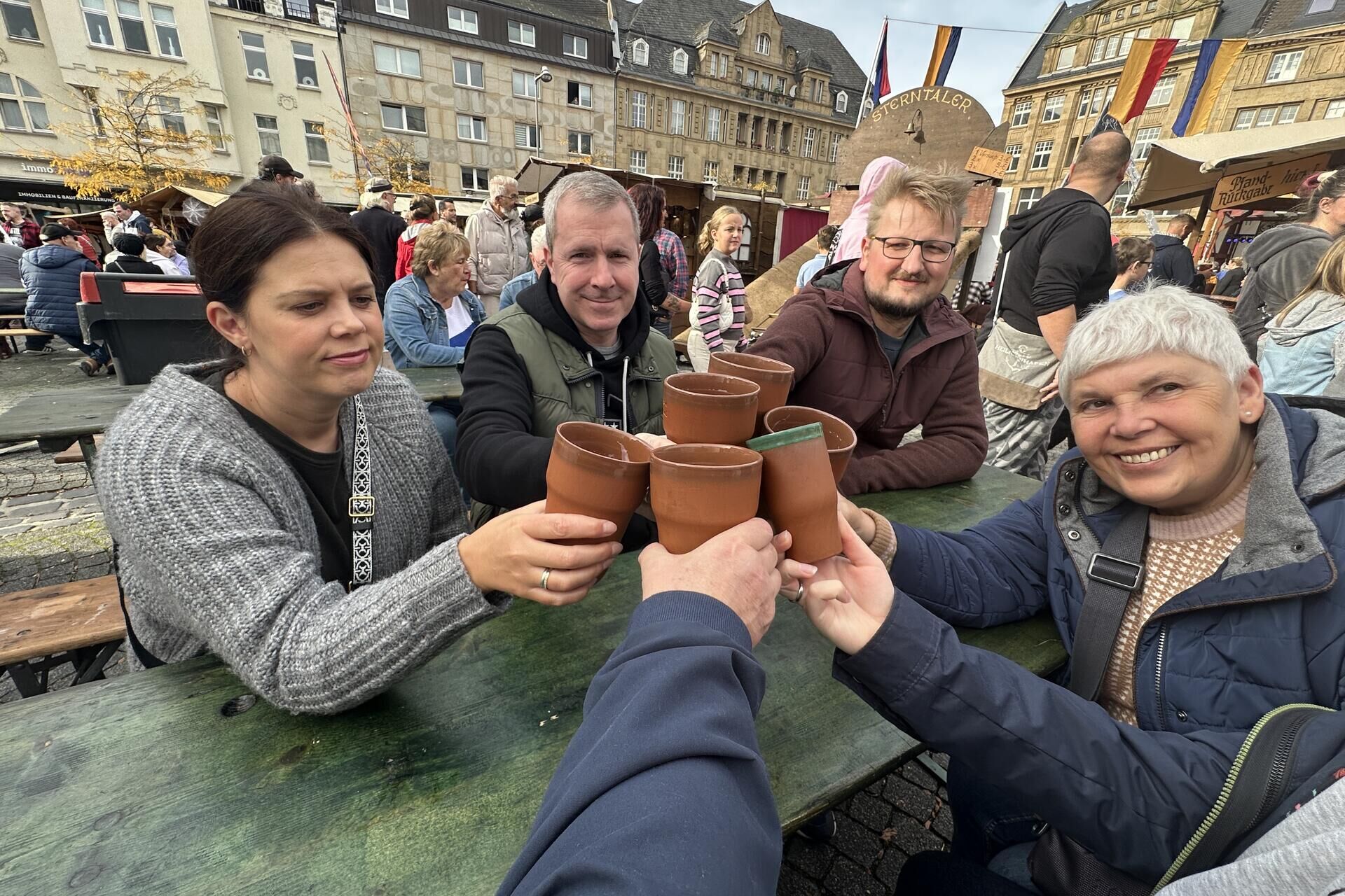 Stilecht wird natürlich auf dem Mittelaltermarkt aus Krügen getrunken.© Jan Keuthen