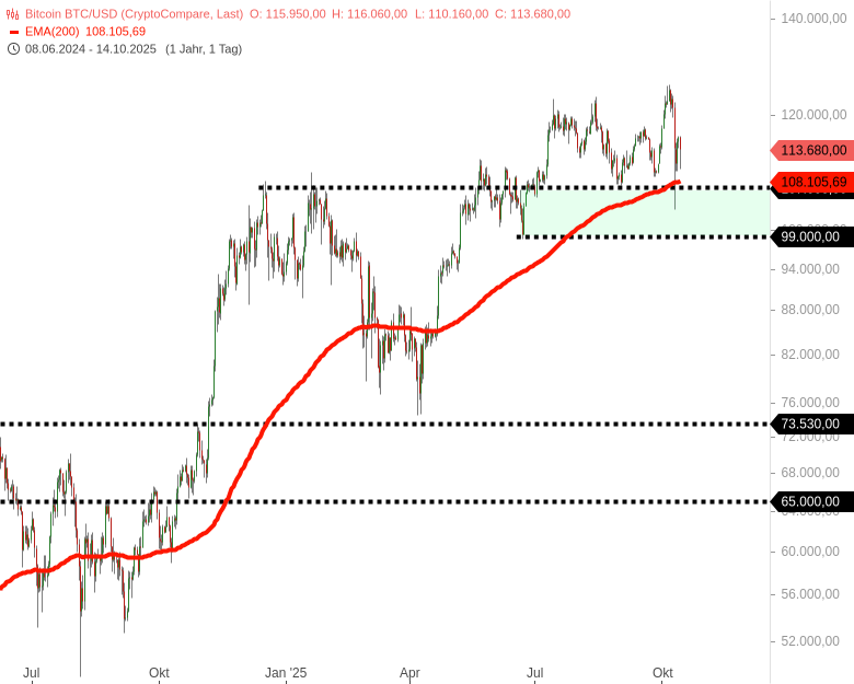- Bitcoin BTC/USD – WKN: A2YY63 – ISIN: XC000A2YY636 – Kurs: 113.514,50 $ (Coinbase Advanced)