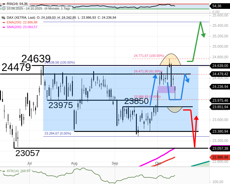 • 🔴BÄRISCH: Ein DAX Rückfall unter 23850 wäre mit einer Chartbildeintrübung verbunden.