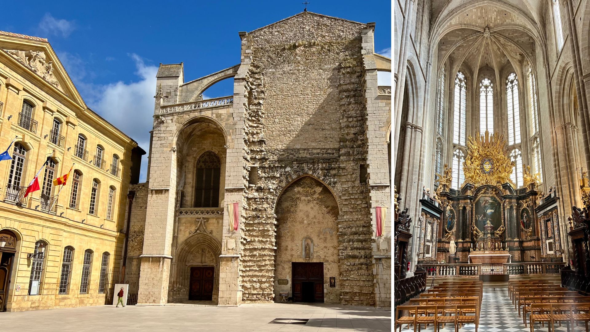 Auf dem Weg zu unserem nächsten Golfziel besuchen wir in Saint-Maximin-la-Sainte-Baume die mächtige Basilika Sainte-Marie-Madeleine, die größte gotische Kirche der Provence. Ihr Bau begann im 13. Jahrhundert, nachdem man dort die Reliquien der heiligen Maria Magdalena entdeckt hatte. Das Gotteshaus beeindruckt mit seiner schlichten, aber imposanten Architektur, hohen Gewölben und farbigen Glasfenstern, die das Innere in ein besonderes Licht tauchen.