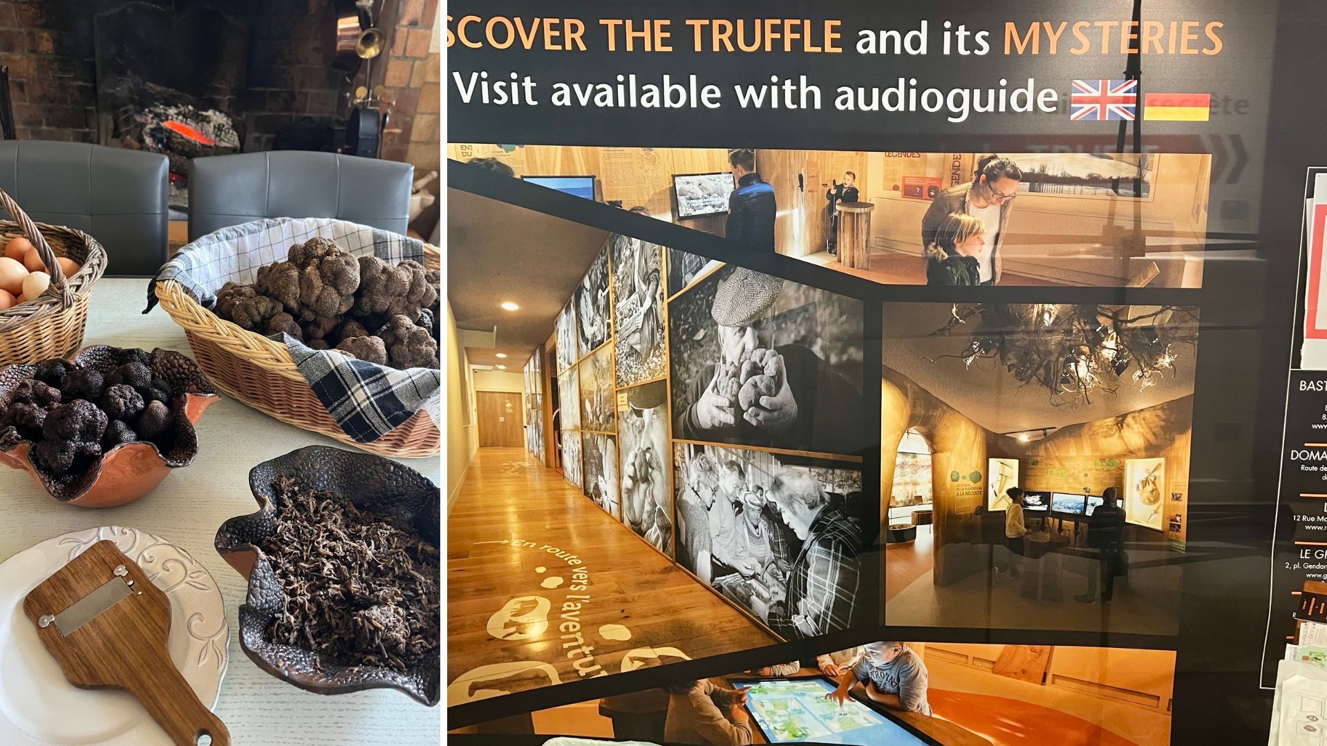 Das ganzjährig geöffnete Museum ist großartig gestaltet, wird mit erheblichem finanziellen Aufwand betrieben und ist das Beste seiner Art. In den interaktiven Ausstellungsräumen erfahren wir alles über die Geschichte, den Anbau und die Ernte des geschmackvollen Pilzes – und dass es keine Trüffelschweine mehr, sondern nur noch Trüffelhunde gibt. Den Audio-Guide gibt es auch in deutscher Sprache.