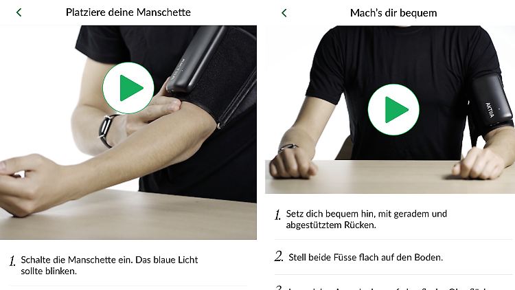 Videos zeigen, wie man die Manschette korrekt anlegt und richtig sitzt.
