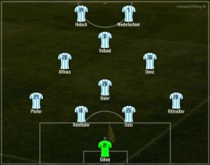 Als einziger Redakteur kehrt Christian zu Dreierkette zurück und lässt die Löwen im 3-5-2 auflaufen. Deniz und vor allem Maier sollen die Defensive unterstützen, während im Offensivbereich Pfeifer, Volland und Rittmüller die beiden Stürmer Sigurd Haugen und Florian Niederlechner mit Vorlagen versorgen sollen.