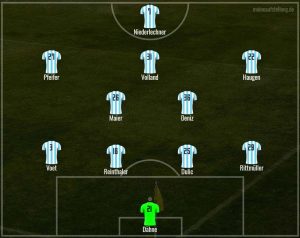 Auf eine breite Raute im 4-4-2 setzt Thomas und hat neben Max Reinthaler noch eine weitere überraschende Personalie auf Lager. Philipp Maier soll im defensiven Mittelfeld abräumen und den Offensivkräften den Rücken frei halten. Im Sturm dürfen Florian Niederlechner und Patrick Hobsch gemeinsam für Gefahr sorgen.
