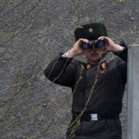Nordkoreanische Soldaten stehen im Jahr 2018 in der demilitarisierten Zone (DMZ) zwischen Nord- und Südkorea.