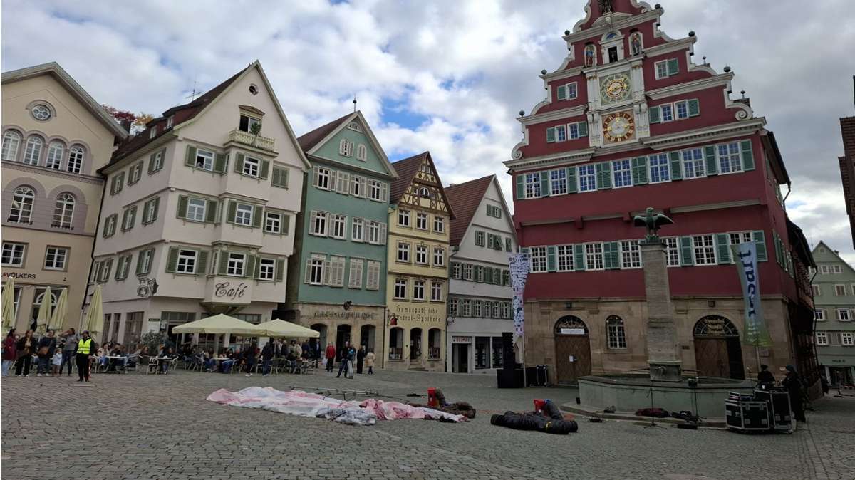 Am Anfang war der Sound. Ein Surren, Summen, Brummen. Laut. Und immer lauter. Fast ohrenbetäubend. Dann krabbeln Fliegen über den Esslinger Rathausplatz. Sehr akrobatisch. Die Menschen in den Kostümen können allenfalls vermutet werden.