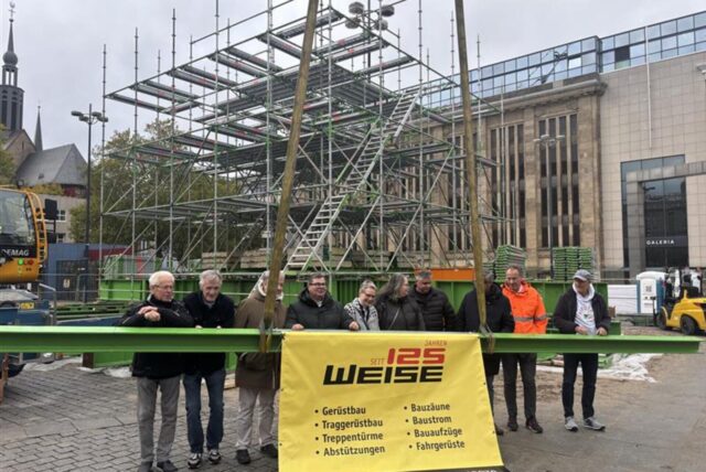 Auf dem Hansaplatz in Dortmund hat am Dienstag, 21. Oktober, die symbolische Grundsteinlegung für den nach Veranstalterangaben größten Weihnachtsbaum der Welt stattgefunden. Mit dem Termin beginnt die finale Vorbereitungsphase für die Dortmunder Weihnachtsstadt, die Mitte November in den Betrieb geht. Trotz wechselhafter Witterung verfolgten zahlreiche Besucher den Start der Arbeiten. „Der Baum ist seit Jahrzehnten ein Fixpunkt im Winterkalender dieser Stadt – sein Aufbau markiert den Übergang von der Herbst- in die Adventszeit“, sagte Schaustellersprecher Patrick Arens während der Grundsteinlegung.