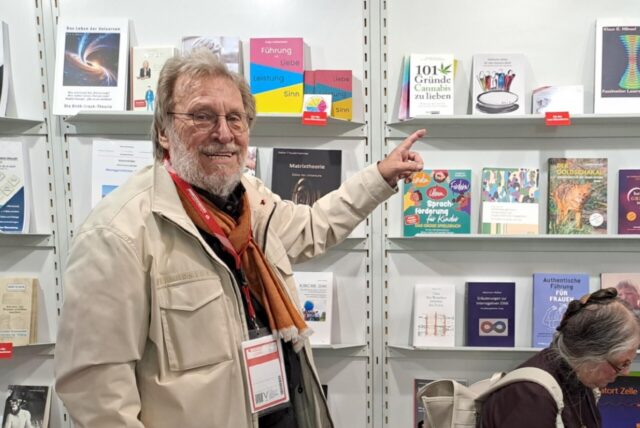 An einem Stand auf der Frankfurter Buchmesse durfte Wilhelm Gryczan-Wiese sein erstes Buch präsentieren. © Gryczan-Wiese