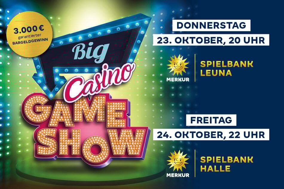 Die Merkur Spielbank in Halle lädt am Freitag (24.10.) zur „Big Casino Gameshow“. Krasse Stimmung, gratis Teilnahme und 3.000 Euro Gewinn!