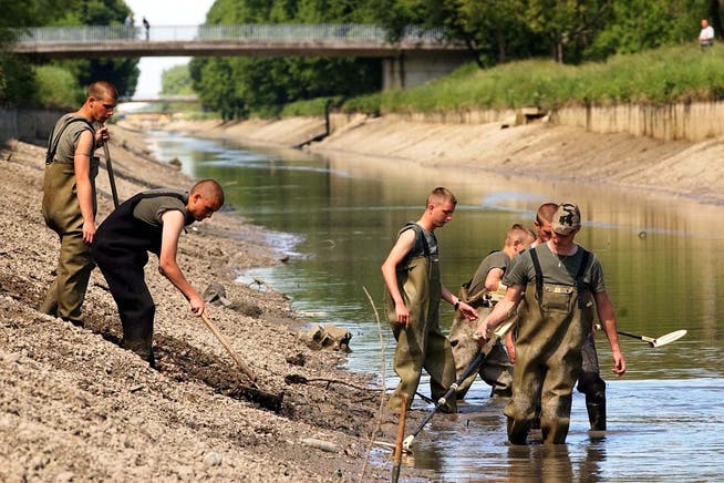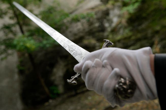 Links: Französische Soldaten suchen im Rhein-Rhone Kanal bei Gerstheim nach Werken, die Breitwieser gestohlen hat. Seine Mutter entsorgte sie nach seiner Festnahme im Kanal. Rechts: Auch das Jagdschwert von Gaspard-Jodoc Stockalper hatte Breitwieser aus dem Historischen Museum in Sitten gestohlen.