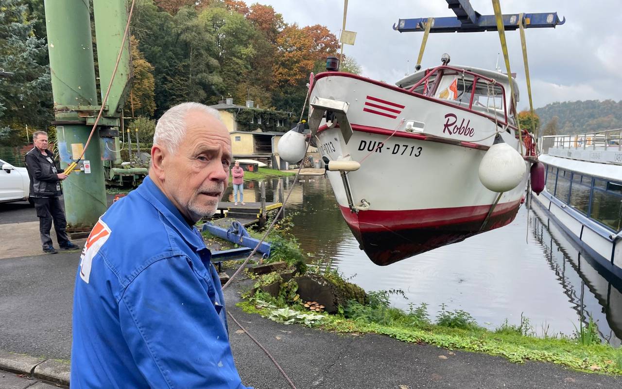 Im Schnitt sind Helga und Winfried mit ihrer Robbe drei Monate im Jahr von Essen aus unterwegs und sie würden gerne noch länger fahren. Die Senioren schippern dabei nicht nur über die Ruhr, sondern bis nach Hamburg, Amsterdam oder Paris. Das hält jung, sagt das Pärchen im Interview mit Radio Essen-Stadtreporter Timm Schröder. Für die Skipper ist die Saison in diesem Jahr zu Ende. Im Hafen der Weissen Flotte am Baldeneysee hebt ein Krahn das Schiff aus dem Wasser auf einen Spezialanhänger. Der wird später von einem Traktor ins Winterlager an der Ruhr gezogen. Hier wartet aber schon wieder Arbeit auf Winfried und seine Frau. Der Rumpf der Robbe muss sauber gemacht und lackiert werden. Der Hobby-Kapitän weiß, je älter das Boot, desto mehr Arbeit macht es. Das stört ihn aber nicht. Es überwiegt die Vorfreude auf die nächsten Fahrten.