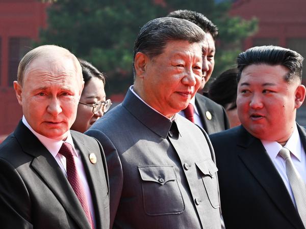 Die Haltung von Chinas Staatschef Xi Jinping (M.) zu Russlands Präsident Wladimir Putin (l.) oder Nordkoreas Diktator Kim Jong-un sind Konfliktthemen zwischen Berlin und Peking.