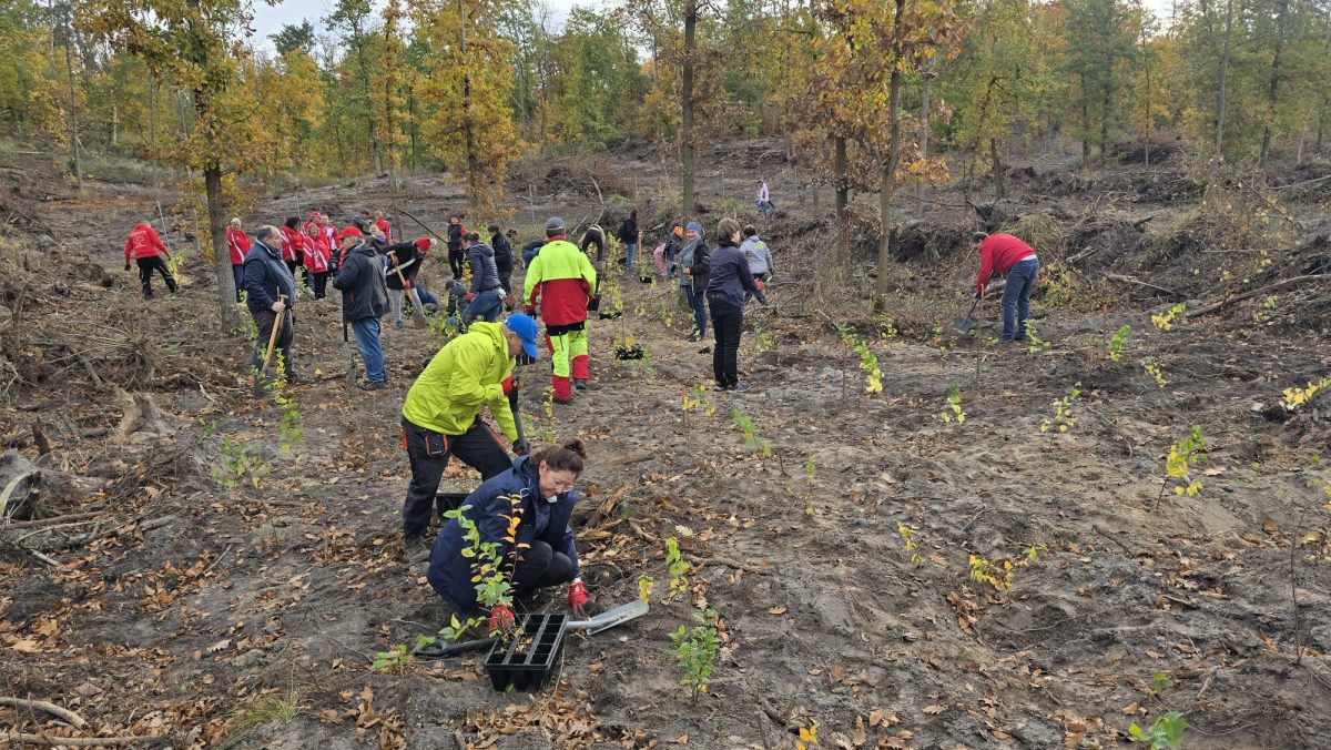Trotz kühler Temperaturen und Wind ließen sich die Teilnehmenden nicht beirren. Auf einer etwa ein Hektar großen Fläche setzten sie gemeinsam 8.300 junge Bäume in die Erde: Hainbuchen, Sandbirken und Kiefern. Die kleinen Kiefernsetzlinge maßen nur rund fünf Zentimeter, die Laubbäume waren mit etwa 20 Zentimetern schon etwas größer. Damit die Pflanzarbeit leichter von der Hand ging, hatte die Stadt bereits im Vorfeld Löcher vorgebohrt – eine Maßnahme, die für viele helfende Hände eine deutliche Erleichterung bedeutete.