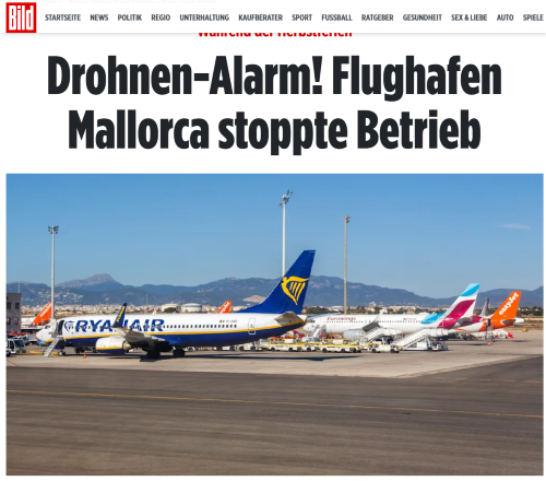 Vor wenigen Wochen waren es noch die Flughäfen in Kopenhagen oder am Flughafen München wo Drohnen den Flugverkehr erheblich gestört haben. Gestern hat es den bei den deutschen Urlaubern sehr beliebte Flughafen auf Mallorca getroffen.