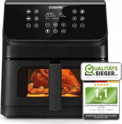 Ich besitze noch keine Heißluftfritteuse – soll ich mir jetzt eine kaufen? Bei DEM Preis denke ich ernsthaft darüber nach. Das schicke Gerät von Cosori mit solider Ausstattung (1700 Watt, Temperaturbereich bis 180 °C, Testnote 1,8 bei COMPUTER BILD) kostet bis Mitternacht nur noch 89,97 Euro bei Amazon. Der nächstgünstigste im Preisvergleich: 115 Euro (inkl. Versand). Knackige 25 Euro gespart. Wenn nicht jetzt kaufen, wann dann?