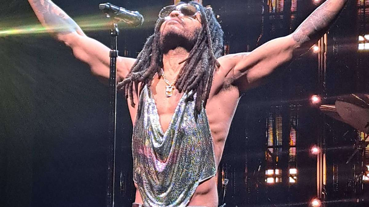Lenny Kravitz mit schillerndem, kurzem Top. Foto: IMAGO/ZUMA Press Wire
