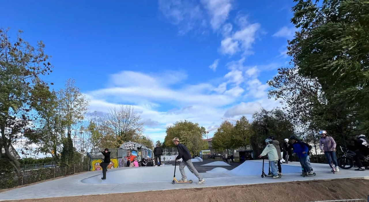 Die Anlage bietet auf einer Gesamtfläche von rund 1.000 Quadratmetern vielseitige Skate-Elemente und Grünflächen.