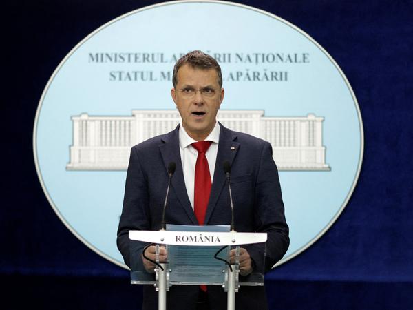 Rumäniens Verteidigungsminister Ionut Mosteanu äußert sich während einer Pressekonferenz zu den US-Plänen.