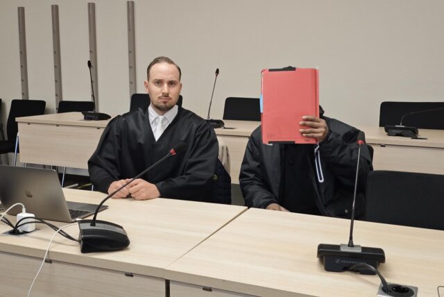 Gilt als psychisch schwer krank: Der Angeklagte neben seinem Verteidiger Nikolaus Tschuck im Essener Landgericht. © Jörn Hartwich