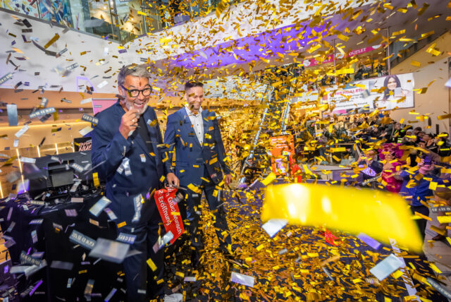 Stand bei seinem letzten öffentlichen Termin im Konfettiregen. Dortmunds Noch-Oberbürgermeister Thomas Westphal (l.), hier neben Torben Steifert, dem Chef der Thier-Galerie. © Thier-Galerie