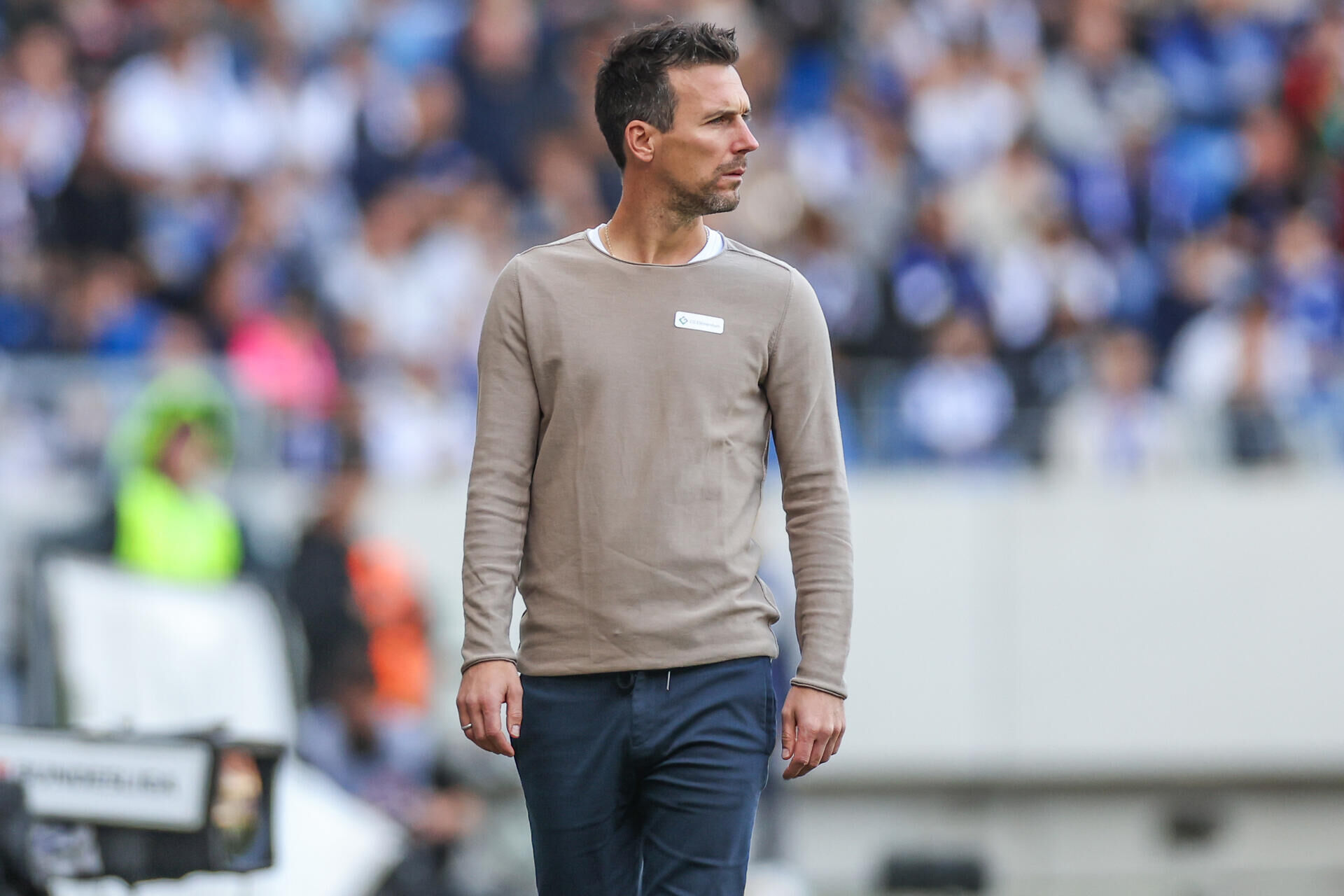 KSC-Trainer Christian Eichner: Mit einem Sieg gegen Schalke würde auch der KSC in die Spitzengruppe der Zweiten Liga vorrücken.© Tim Rehbein/RHR-FOTO