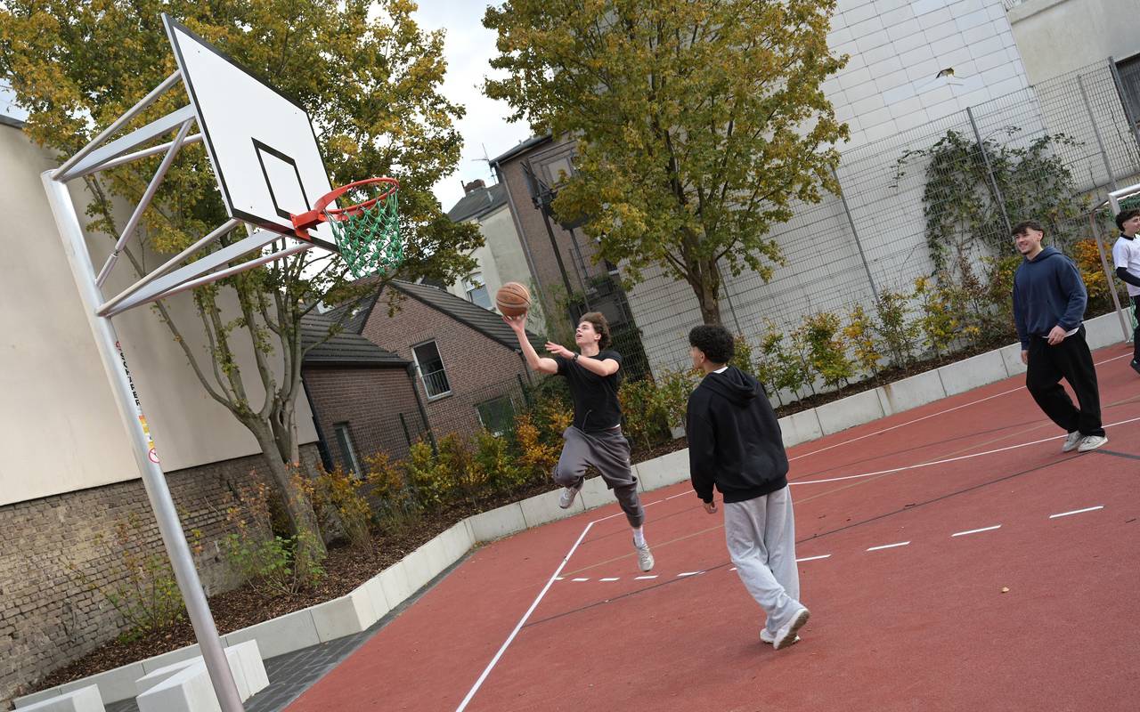 Die Begeisterung war so groß, dass die Kinder und Jugendlichen nicht auf das offizielle Signal warteten. Noch bevor Schulleiterin Sabine Kretschmann-Dulisch zusammen mit Seelsorgerin Sophia Kita und weiteren Gästen das Absperrband durchtrennen konnte, lag das Flatterband bereits am Boden. Hunderte Schüler eroberten den neuen Sportplatz, kletterten auf die Geräte und testeten die modernen Sitzbänke. Die Gestaltung des Schulhofs basiert auf Ideen der Schülervertretung. Der Duisburger Landschaftsarchitekt Thomas Schmidt setzte die Wünsche auf der eng begrenzten Fläche um. Auf einen Zaun zwischen Basketballkorb und Calisthenics-Anlage wurde bewusst verzichtet – nun sind gegenseitige Rücksichtnahme und Abstimmung gefragt, damit alle die Geräte nutzen können.