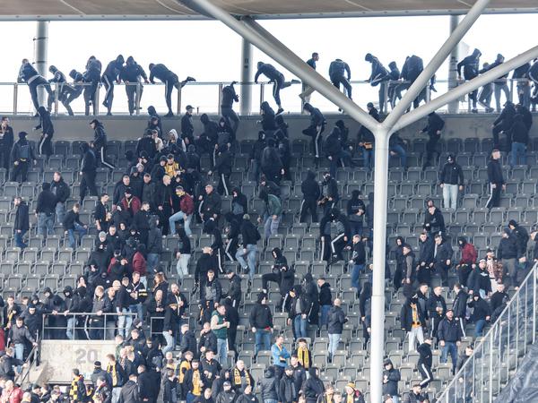 Im Stadion kam es zu einer Auseinandersetzung zwischen Fans beider Lager, die Polizei musste eingreifen. Nach ersten Informationen sollen mehrere hundert Leute beteiligt gewesen sein, bestätigt ein Polizeisprecher.