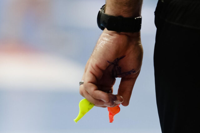 Im Fußball nimmt die Gewalt an Schiedrichtern immer weiter zu. Ist das auch im Handball der Fall? © picture alliance/dpa