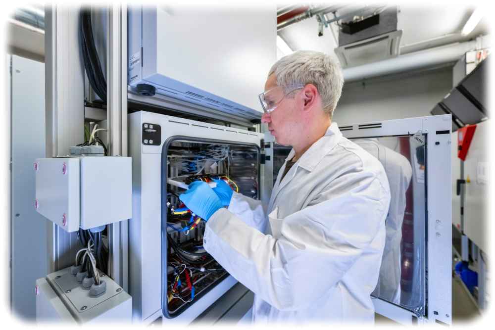 Ein IWS-Forscher testet im Labor Zellkonzepte für Lithium-Schwefel-Akkus-Foto: Martin Förste für das Fraunhofer IWS