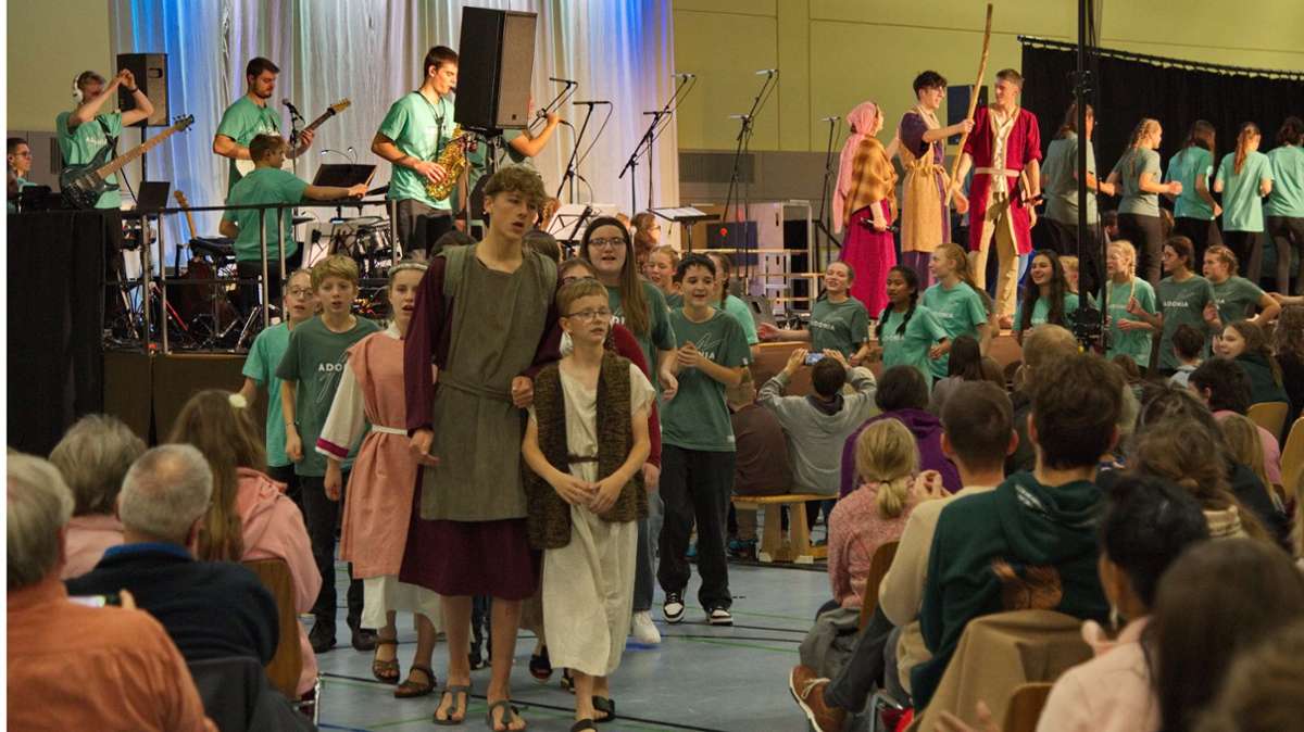 „Es ist ein überwältigender Anblick, die Halle so voll zu sehen“, freute sich Pastor Jochen Lengler in seiner Begrüßung. Schirmherr war, wie schon bei der Aufführung des Musicals „Petrus“ im Jahr zuvor, Bad Wildbads Bürgermeister Marco Gauger.