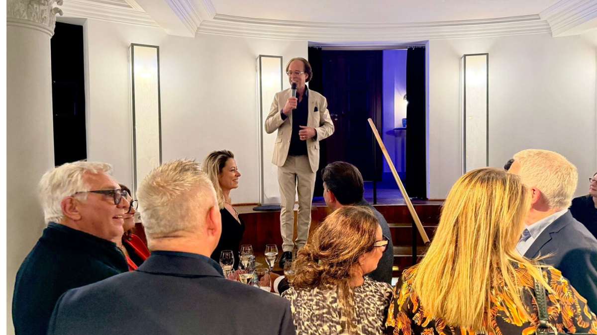 Nach den Aufzeichnungen von drei Sendungen (produziert von seiner eigenen Firma sonntag.tv) feiert der Kabarettist im Foyer mit prominenten Gästen und freut sich: „Mit diesem tollen Publikum werden wir beeindruckende Sendungen hinbekommen.“ Ein Extra-Lob geht an Nikolai Dörler, der mit seinem Fernsehteam aus Österreich für „Hollywood in Stuttgart“ sorgen, in dem er mit hochwertigen Arri-Kameras „Aufnahmen im Kinolook“ produziere. Unter den Gästen: Kiwanis-Präsident Zoltan Bagaméry, Bauunternehmer Jürgen Pflugfelder, Gudrun Nopper, die Vorsitzende des Vereins Stille Not, VW-Vertriebsleiter Michael Perner, Unternehmer Marcus Pracht.
