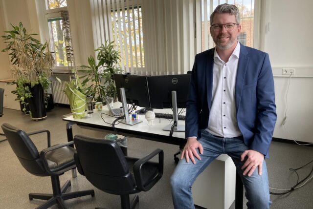 Bürgermeister Thomas Terhorst in seinem neuen Büro im Stadthaus 1 auf dem Gelände von Auguste Victoria. © Thomas Brysch