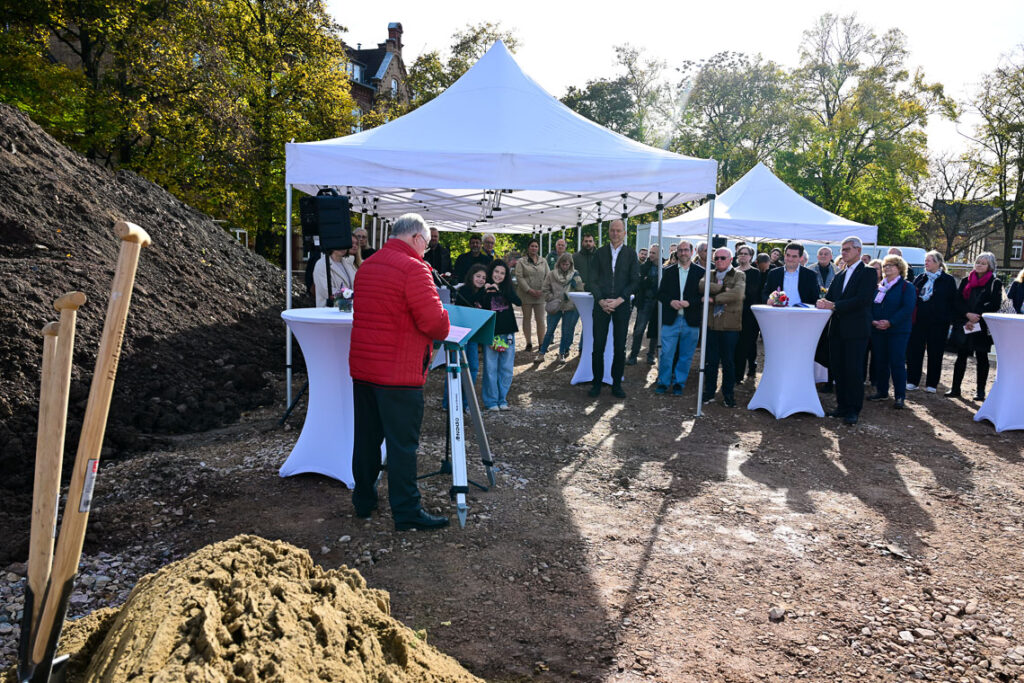 Spatenstich für den Neubau der Schulmensa an der Pestalozzi-Grundschule.