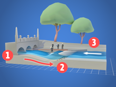 Sollte der Versuch, den Pegel nochmals anzuheben, tatsächlich scheitern, gibt es weitere Überlegungen: Denkbar wäre etwa, den Abfluss zu verengen, um die Unterströmung zu verändern und so den Widerstand für die Welle zu erhöhen.