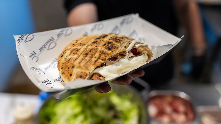 Wie ein herkömmlicher Döner wird sein Meerestier am Spieß mariniert und gebraten, schließlich vom Spieß geschnitten und auf einer Grillplatte gewürzt. Salat, Radieschen, Gurken und Aioli ins Fladenbrot – fertig und gar nicht so anders im Aussehen. Nur der Geschmack erinnert eher ans Mittelmeer als an Berliner Pressfleisch.