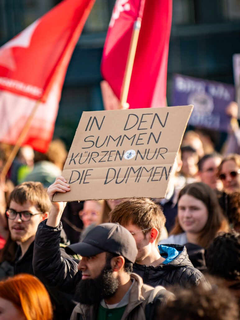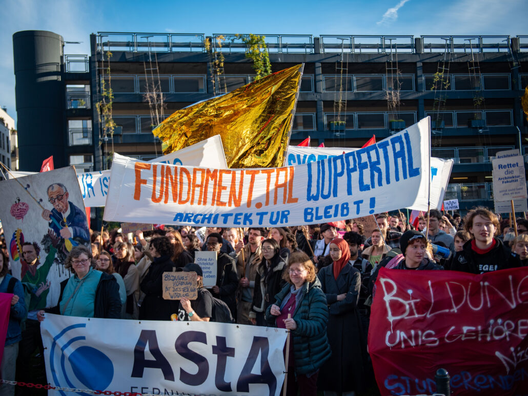 Auch ich habe mich – nicht nur als Berichterstatter, sondern auch als Student der Bergischen Universität Wuppertal – auf den Weg nach Düsseldorf gemacht, um mich für die Bildung in Nordrhein-Westfalen stark zu machen. Die Universitätsleitung hatte den Ausfall aller Lehrveranstaltungen während der Demonstration bekanntgegeben. Auch meine Universität wäre von Kürzungen in diesem Ausmaß stark betroffen. Unter anderem steht die Streichung des gesamten Studiengangs Architektur im Raum, und auch in meinem Fachbereich, der Germanistik, würde eine Professur wegfallen.