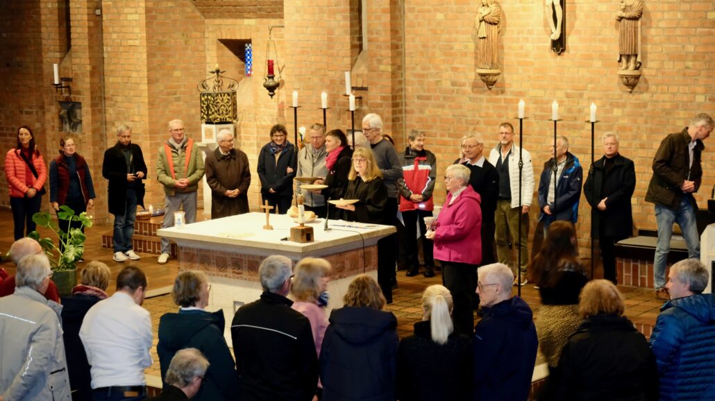 Kraft für die Abschiedssynode hatten die Teilnehmer und Teilnehmerinnen zu Beginn des Morgens bei einem gemeinsamen Gottesdienst in der Kirche St. Elisabeth getankt. Sein Thema: „Jeder Mensch ist geschaffen in Wert und Würde.“ Claudia Malzahn, langjährige Pfarrerin in der Gefangenenseelsorge, gab dies den Teilnehmenden als Ermutigung, Auftrag und Gegenbotschaft zu Krieg und Zerstörung und zur Krisenstimmung in der Welt mit auf den Weg. Zusammen mit ihrer Kollegin Pfarrerin Janneke Botta sowie ehrenamtlichen Mitarbeitenden in der Gefangenenseelsorge gestaltete sie den Gottesdienst.