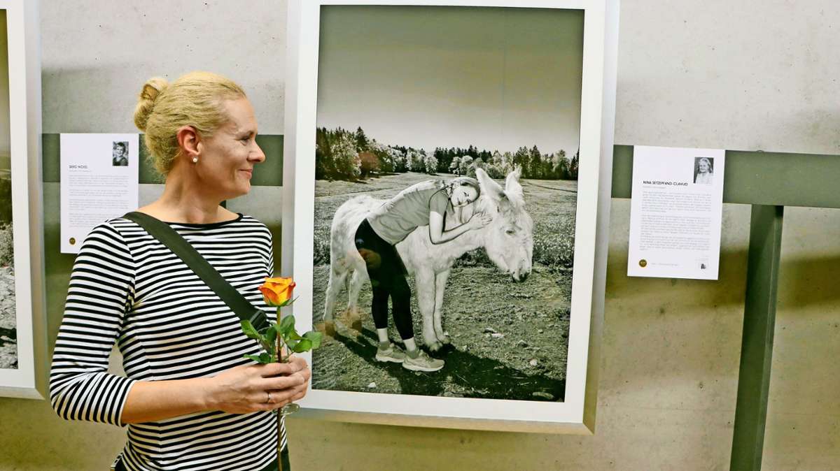 Dreimal Nina Setzepfand-Clavijo: als Besucherin der Ausstellung, im Porträt von Gabriele Hepp und als Albstädter Kind Foto: Weiger-Schick