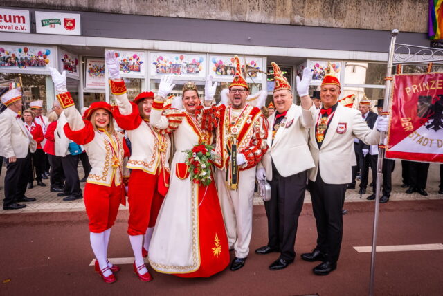 Der Präsident des Festausschusses Dortmunder Karneval e. V. Walter Buchholz freut sich zusammen mit dem Prinzenpaar auf die neue Saison. © Stephan Schuetze